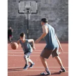 Our outdoor basketball hoop features upgraded materials including a 44″ durable PC backboard, high-density PE base, and a stable net for the perfect shooting experience.