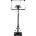 The basketball goal offers improved stability, portability, and assembly.