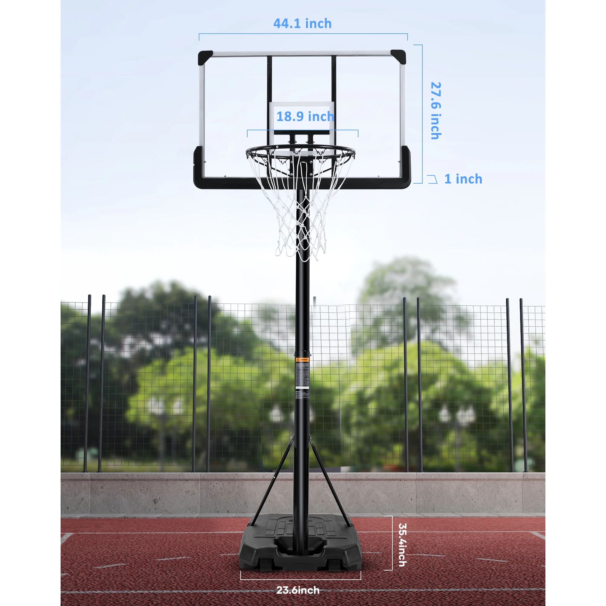 Base Dimension of the basketball hoop: 35.4 x 23.6 inches